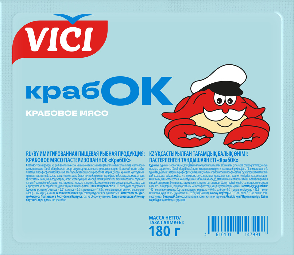 Крабовое мясо КрабОК охлажденное 180г, Vici